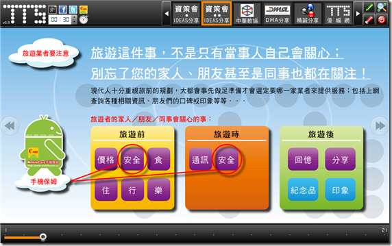 第三場也是由小弟主講的「手機+雲服務為旅遊業的加值」,主要是把小弟創辦的「MobileCare手機保姆」分享給今天的來賓們,希望能藉由異業的合作來達到雙贏的局面(旅遊業者可以增加其服務的附加價值、手機保姆可以增加客戶群)!
